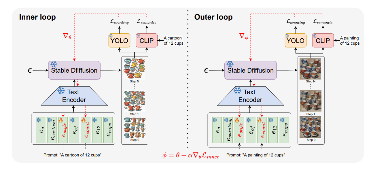We propose QUOTA, a domain-agnostic optimization framework for text-to-image models that enables accurate object quantification across unseen domains without retraining, by combining dual-loop meta-learning with prompt, counting, and domain tokens to achieve superior accuracy and adaptability.